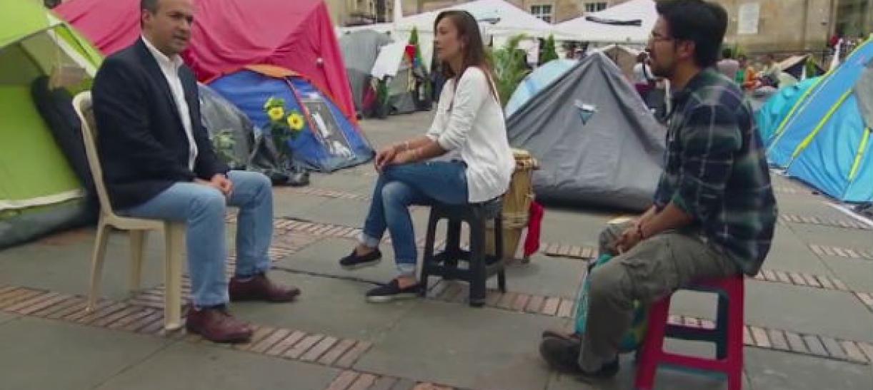 En la Plaza de Bolívar de Bogotá, decenas de personas integran un campamento que clama por el fin del conflicto armado.